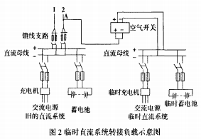 在對現(xiàn)場原有直流系統(tǒng)饋線網(wǎng)絡(luò)進行仔細核對后,擬定了替換計劃,整體的替換思路是:建立一個簡易的暫時直流系統(tǒng),使用暫時系統(tǒng)轉(zhuǎn)接負載。如圖2所示。
