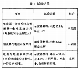 依據(jù)上述試驗成功的并列計劃,擬定了直流屏替換的“舊直流屏一暫時直流電源系統(tǒng)→新直流屏”供電轉(zhuǎn)化施工過程:①用電池組和暫時充電機樹立一個暫時系統(tǒng)并將直流饋供支路轉(zhuǎn)至暫時直流系統(tǒng)空氣開關(guān)下方;②將原直流系統(tǒng)的允電機停用,從暫時直流系統(tǒng)引出一組直流電源接到空氣開關(guān)上方(注意極性);③合上空氣開關(guān)(此時暫時充電機不工.作).將負載轉(zhuǎn)至暫時直流電源供電;④斷開舊直流屏的饋供支路,合上暫時充電機的流輸入電源,使暫時直流系統(tǒng)正常作業(yè);⑤斷開舊直流屏交流輸入電源,撤除舊直流屏;◎新直流屏就位,設(shè)備電池,連線,接交流,調(diào)試正常;⑦重復上述過程.即可將負載接入新的直流屏;出檢食核對各饋供支路極性正確,新屏工作正常。